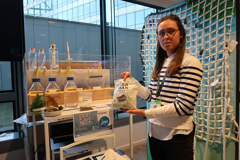 Besides the presentations in the main hall, several projects showed their results, ready for upscaling. Among them the ULTFARM project focused on low trophic aquaculture. They exposed their results in mussel culture, seaweed production and derived products, such as crunchy chips from seaweeds.