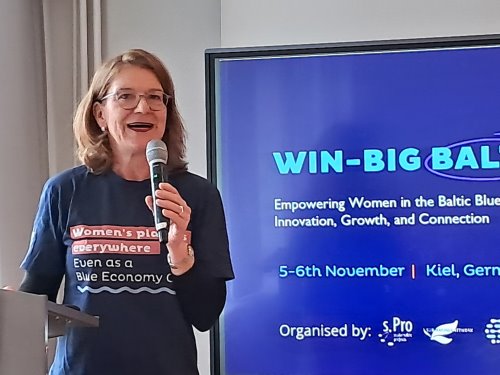 Upon the invitation of the Submariner Network, Cornelia E Nauen of Mundus maris attended the Win Big Baltic Event on 5 November in Kiel, Germany, as a panelist. The meeting took place in the Seeburg building of the university overseeing Kiel Fjord with its busy cruise ship traffic and shipyards on the opposite side.